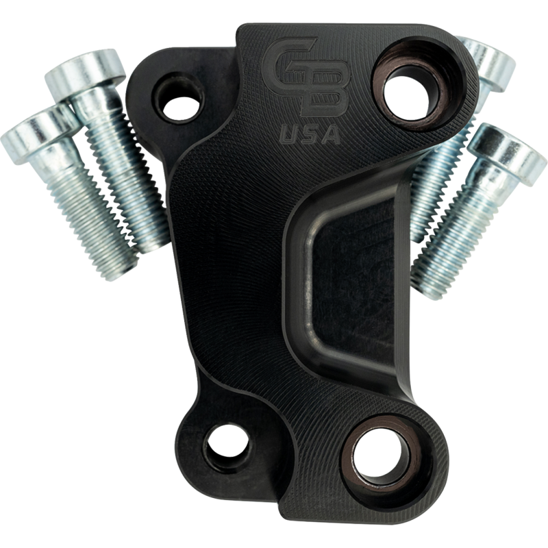 This precision made bracket is used to relocate the caliper to allow an oversize rotor