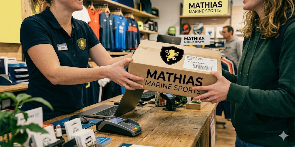 Les commandes seront à récupérer chez Mathias Marine Sport, 874 Ch des Patriotes, Saint-Mathias-sur-Richelieu (Québec) au comptoir du service, demander à la réception à votre arrivée pour une cueillette rapide.