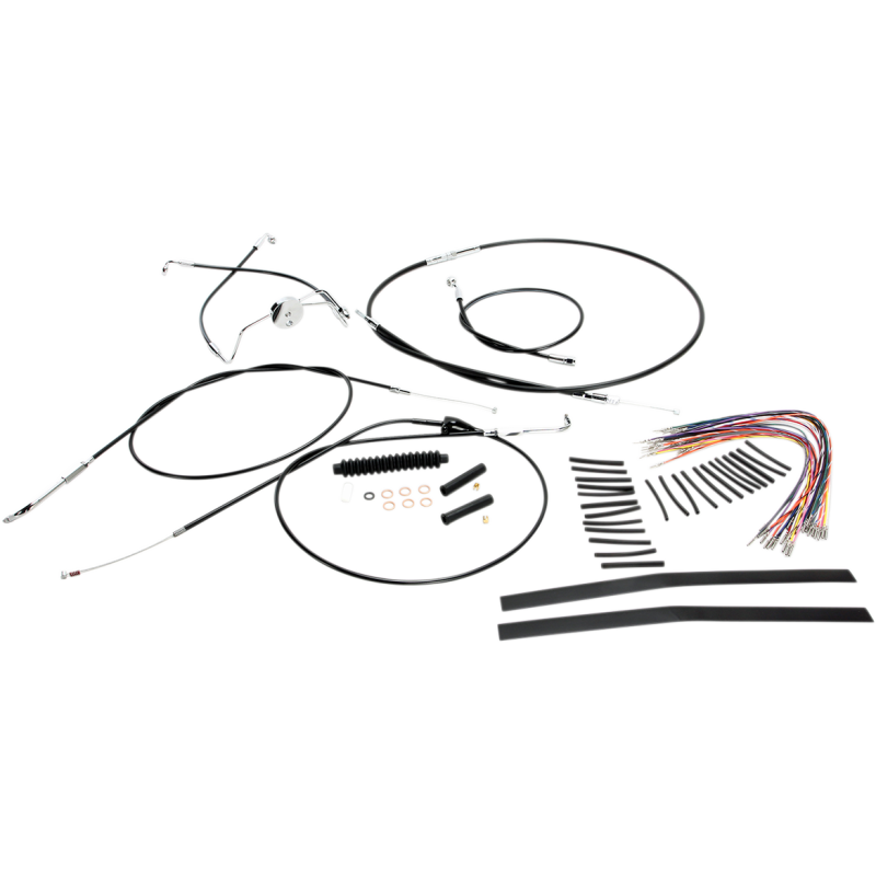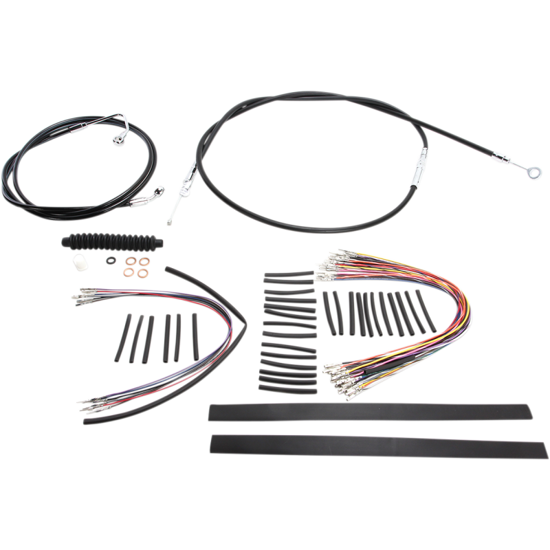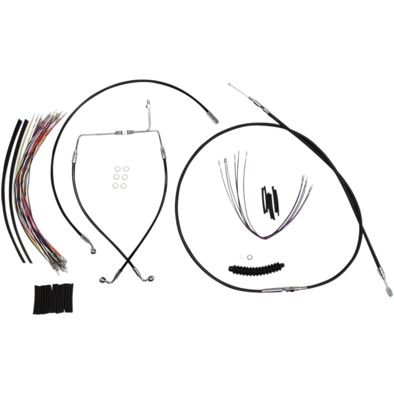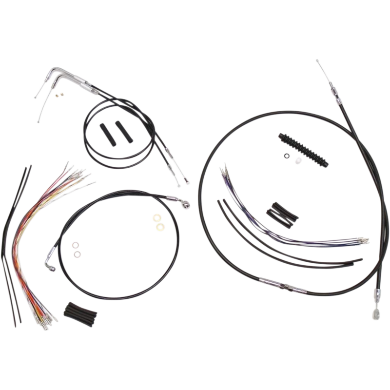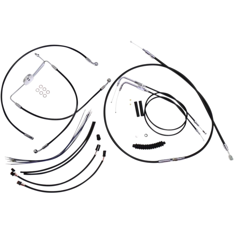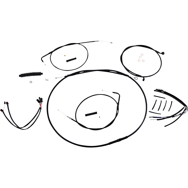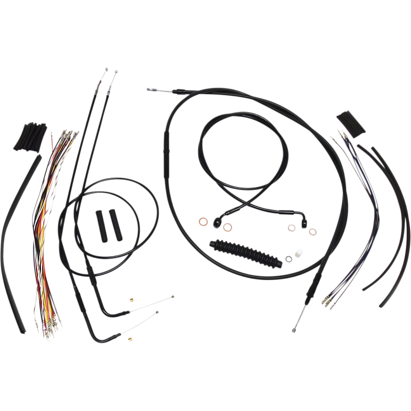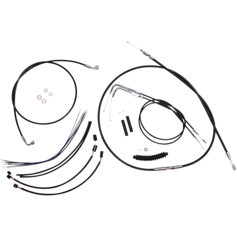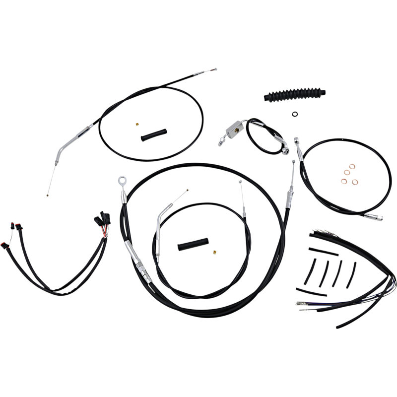 Kits include throttle and idle cables or fully terminated throttle-by-wire extensions, clutch cable or hydraulic clutch line, XR DOT brake lines, copper crush washers, hardware, and fully terminated turn signal and switch wiring extensions