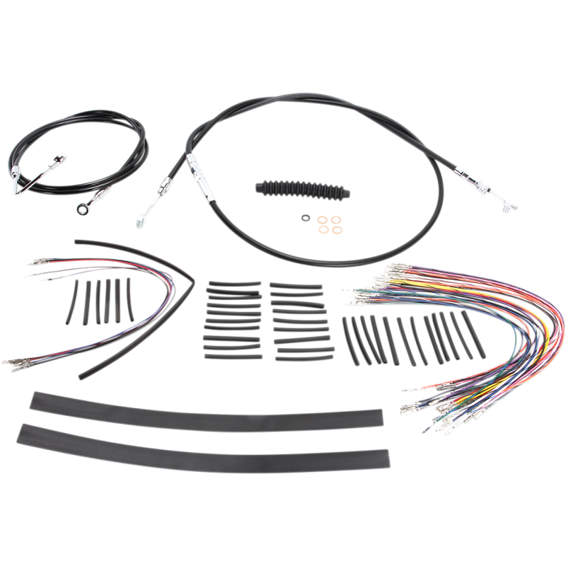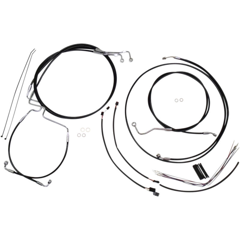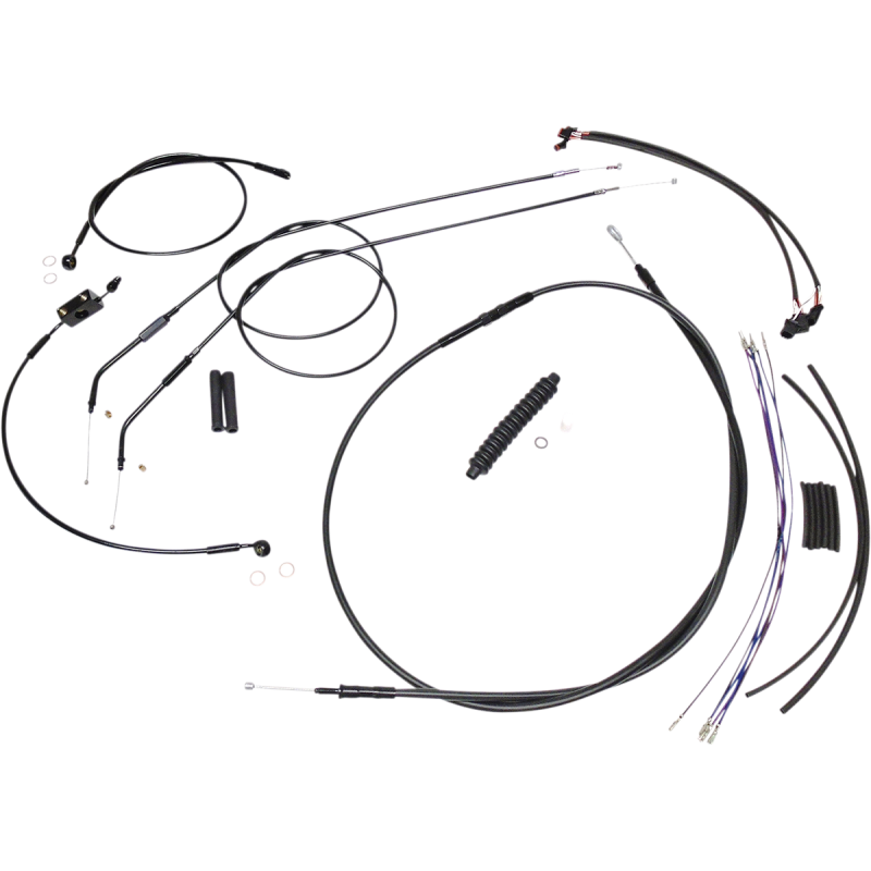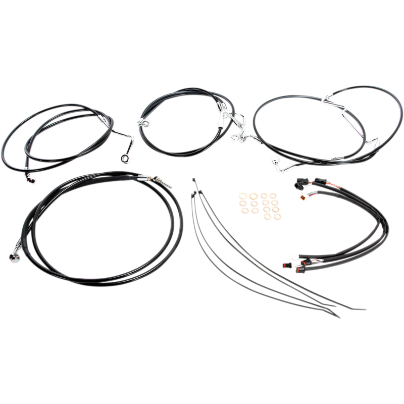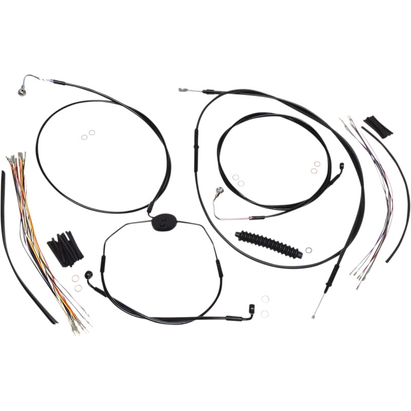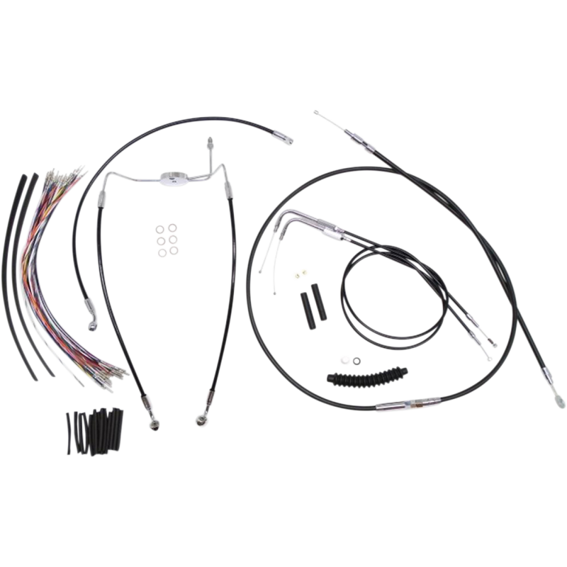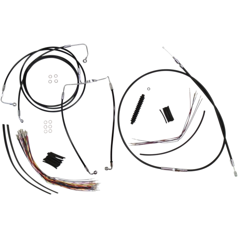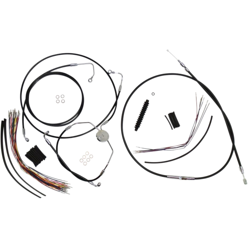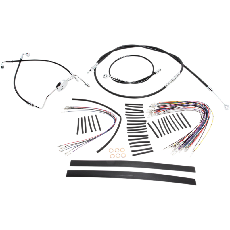 Kits include throttle and idle cables or fully terminated throttle-by-wire extensions, clutch cable or hydraulic clutch line, XR DOT brake lines, copper crush washers, hardware, and fully terminated turn signal and switch wiring extensions