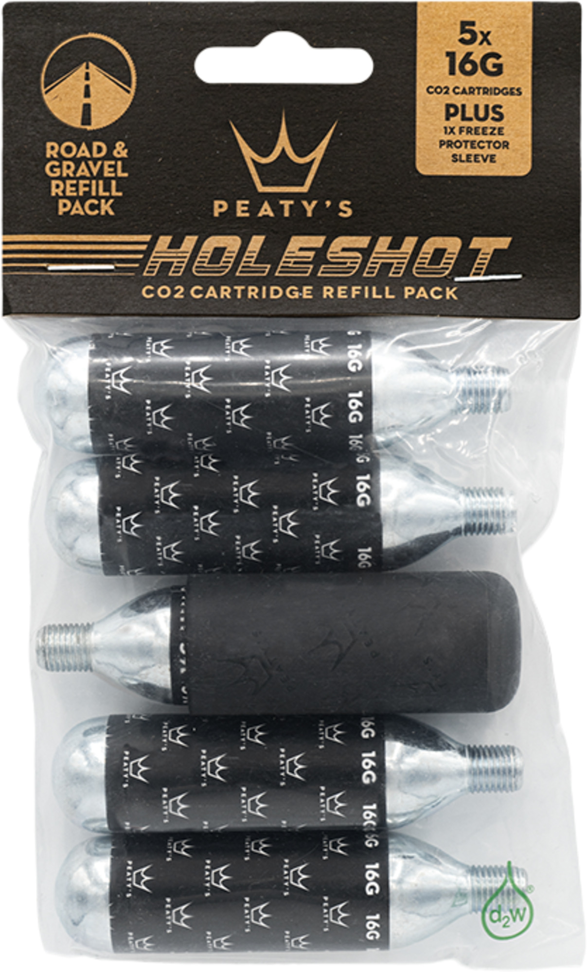 • 5 cartouches de CO2 filetées par paquet, incluant un manchon de protection contre le froid