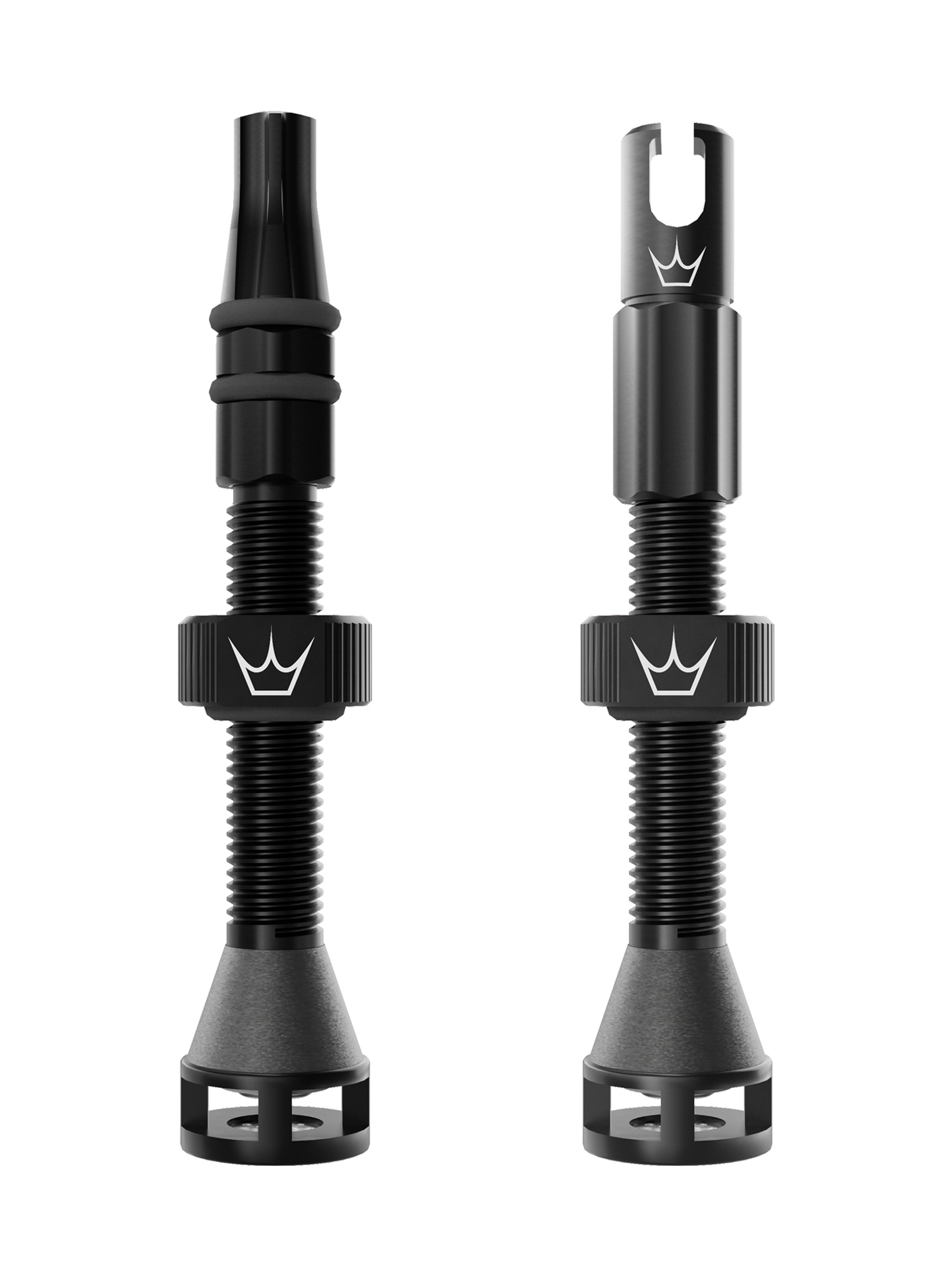 Cette nouvelle génération de valves à haut débit permet à une plus grande quantité d'air et de scellant de circuler directement et plus rapidement dans le pneu. Une valve endommagée par une pierre restera étanche même si la tige est cassée puisque son joint d'étanchéité est situé à l'intérieur de la jante. Un capuchon de valve sert de clé à rayons en cas d'urgence, tandis que l'autre sert à déverrouiller l'étoile de pédalier des vélos électriques pour permettre la lubrification de la chaîne.